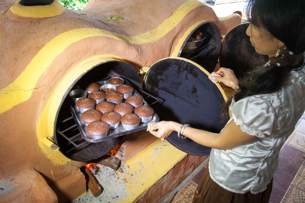 We bake our famous banana and chocolate muffins in our woodfired oven. Our bread is also baked in this homemade wood-fired oven. Pizzas are also available on request. Best to order during the day and have it for dinner.